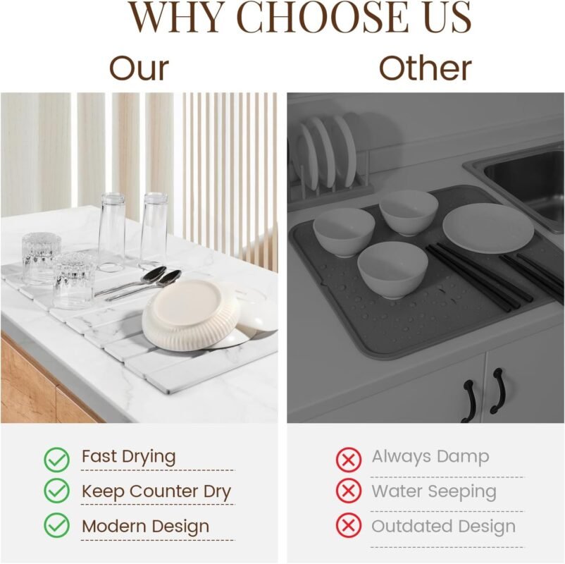 Our flagship product — the Nestova Stone Drying Mat — is crafted from natural diatomaceous earth, offering unmatched absorption, fast drying, and a sleek, modern look that complements any countertop.